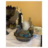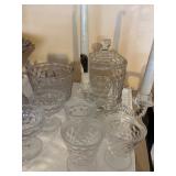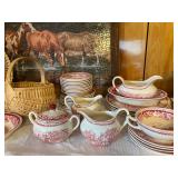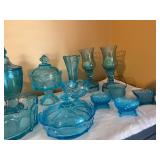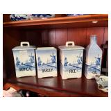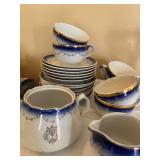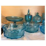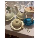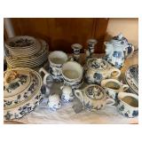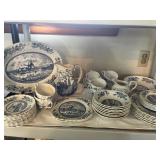 Crest O Gold Sabin, Depression glass, Lustreware, Currier & Ives, Delphite Blue, Milkglass, Derby glasses, Cobalt blue, Lochs of Scotland by Royal Warwick, Liberty Blue Ironstone by Wedgwood, canister sets, and Blue Danubue. Other items include: McCoy cookie jars, kitchen items, small appliances, Daisy butter churns, compotes, and so much more. Martha Stewart Everyday set