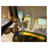 Offering: Couch, upholstered straight chairs, end tables, desks, tea cart, parlor table, small 4 drawer chest, changing table, display cabinets, sewing baskets, stunning China cabinet, curio, entry table, lamps, art work, linens, vintage clothing, chest of drawers, child’s toy kitchen cabinet, hand tools, yard tools, mesh outdoor furniture, Tonka trucks, huge variety of toys, books, albums, dvd’s, lunchboxes, XBOX 360 (new in box) Wii & Wii games, and a drop leaf table. Collections of : Carnival glass, Fostoria, Flow Blue, Blue Delft, Fire King, small amount of FiestaWare, salt & pepper shakers, Hall’s Autumn Leaf, antique vanity sets, Jadeite, Homer Laughlin, Pfaltzgraff, Johnson Bros. Tulip Time, lanterns, Royal Doulton Bunnykins, Coca Cola,