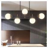 EDISLIVE Deerfield 5-Light Black & Brass Kitchen Island Chandelier with Milk Globe Glass Shade