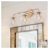 Uolfin Modern Linear Vanity Light, 3-Light Gold Bathroom Wall Sconce with Globe Seeded Glass Shades