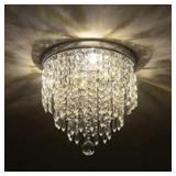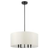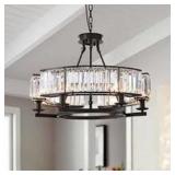 Modern Crystal Chandelier 26 in. 6-Light Black Drum Pendant Lighting Ceiling Semi Flush Mount