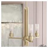 Hunter Gatz 3-Light Alturas Gold Candlestick Chandelier with Ribbed Glass Shades