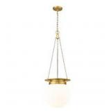 Calhoun 13 in. 1-Light Heritage Brass Pendant Light with White Opal Glass Shade with No Bulbs included