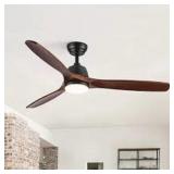 YUHAO 52 in. Integrated Dimmable LED Indoor Farmhouse Black Ceiling Fans with Light Kit and Remote, Reversible DC Motor
