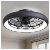Oaks Aura 20in. LED Indoor Black Bladeless Low Profile Ceiling Fan Flush Mount Smart App Remote Control Dimmable Lighting
