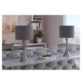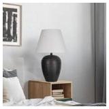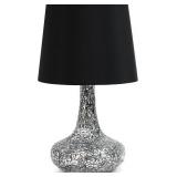 Simple Designs 14.17 in. Black and Silver Mosaic Tiled Glass Genie Table Lamp with Satin Look Fabric Shade