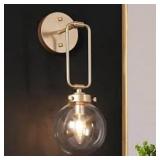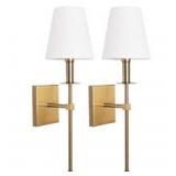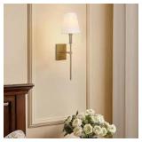 LamQee 1-Light Antique Gold Wall Sconce with White Fabric Shade