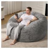 Hobestluk 5ft Bean Bag Chairs for Adults Large Beanbag Chair with Chevron Plush Fur Cover Big Bean Bag Chair for Living Room Bedroom Dorm Office - Grey (50” x 50” x 24”)