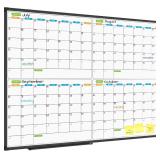JILoffice Magnetic Dry Erase Calendar Whiteboard, 4 Month White Board Planner 48 X 36 Inch, Black Aluminum Frame Wall Mounted Board for Office Home and School