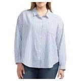 Jag Jeans Womens Plus Relaxed Button-Down Shirt-Blue Stripe SIZE 1X