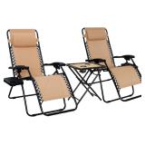 Amazon Basics Outdoor Patio Mesh Adjustable Zero Gravity Lounge Chair Recliners set of 2 with Side Table, 35 x 26 x 43 inches, Beige