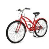 26" Beach Cruiser Bike 7-Speed Commuter Bicycle for Girls, Boys, Mens and Womens, Red