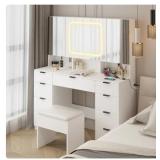 Zimtown Large 47.24" Makeup Vanity Table Set with Hidden Mirror Storage, Dressing Table w/Charging Station, White