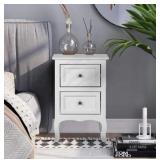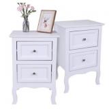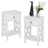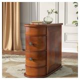 Tribesigns Wood End Table, 2-Drawer Narrow Side Table Slim Chair Solid Side Table, No Assembly Required, Finished Back, Walnut
