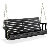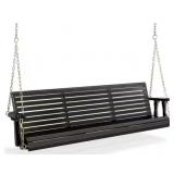 5 ft. Black Wood Patio Porch Swing with Adjustable Chains, Support 880 lbs., Durable PU Coating