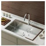3. Thoughtful Design: Features R10° rounded corners for easy cleanup and modern aesthetic. Sloped bottom with 4 grooves ensures optimal water drainage. Stainless steel bottom checkerboard sink rack with rubber feet prevents scratching and it comes with a kitchen sink drain strainer inserted with deep basket (No faucet included).