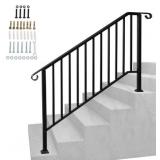 VEVOR 3 ft. Handrails for Outdoor Steps Fit 3 or 4 Steps Outdoor Stair Railing Wrought Iron Handrail with baluster, Black