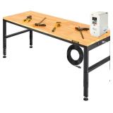VEVOR 60" Adjustable Workbench, Heavay Duty Workstation 2000 LBS Load Capacity, with Power Outlets & Rubber Wood Top & Metal Frame & Foot Pads, for Workshop Office Home Garage