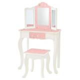 TIME TO PLAY DRESS UP: Includes a vanity table with a tri-fold mirror (with an acrylic mirror) and a storage drawer for hair accessories, play make-up, jewelry, etc.
