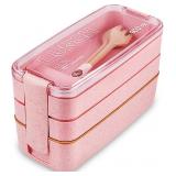 10 PACK - Iteryn Bento Adults Lunch Box, Stackable Bento Box, 3-In-1 Compartment - Wheat Straw, Leakproof Bento Lunch Box Meal Prep Containers