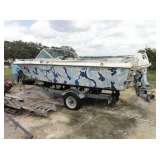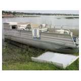 ::::::::::::::::: Pontoon Boat (Landau DX 20, needs your love) Working Tractor (1972 Massie Ferguson Diesel) Camouflage Boat w/Trailer (20’Bonito, 115 Johnson Motor) :::::::::::::::::::: FURNITURE Antique Wooden Sleigh & Solid Wooden Tea/Serving Cart Wooden Ships Wheel & Sensenich Signed Wooden Propeller 1920s Signed ‘Divina Gong’ German Olde’ World Working Grandfather