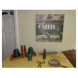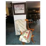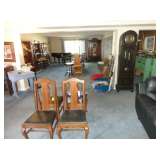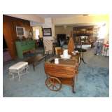 Racks Handmade ‘Under the Bed’ Wooden Storage Chest/On Wheels Remarkable 1920s Folding Children Crib (a must see) Amazing Oak Inlaid Armoire w/Beveled Mirror Antique Convertible Iron Board/Kitchen Stool Interesting Lift Coffee Table & Great Mirrors La Z Boy Recliner & Bench/Window Storage Chest Handmade Baby Bassinette’ & Children’s Horsey Rocker Great Wooden Office Desk & Set of 4 Leather Topped Chairs Colorful Set of 9 Ladder Back Chairs & Large Globe on Stand 4 Vintage Children High Chairs & Grand White Oval Dining Table Black Leather Sofa & Matching Loveseat & Cuckoo Working