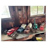 We also have multiple vintage & antique bedroom furniture pieces, including 4 dressers, 2 blankets chests (one made by Lane, with lovely carvings), plus kitchen and dining tables with leaves & chairs (the double-pedestal dining table has a an extra-large leaf, & felt tops for all), a lovely long credenza piece, and all pieces are heavy, solid, and made the RIGHT WAY. We also have a grandmother clock of a unique and beautiful red color, and of course a few interesting smaller furniture pieces here and there... plenty to see and explore! So, grab a friend or 2 or 5, come on down, and explore this old, historic home located on Drum Point Rd in Brick. This sale will be REALLY FUN, and we hope to see you there! |