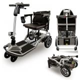 Ultra-Lightweight and Compact Foldable Design: Weighing just 37.5 lbs without the detachable armrests and battery, this folding mobility scooter is designed for easy transport and storage. Its compact, foldable design makes it ideal for travel. When folded, its dimensions are 37.4" D x 21.9" W x 18.1" H, allowing it to fit conveniently in the trunk of a standard vehicle— perfect for road trips or short outings. Enjoy the freedom to take your mobility scooter anywhere without hassle!