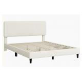 24KF Linen Upholstered Tufted Button King Headboard and Comfortable Fashional Padded King/California King Size headboard - Ivory
