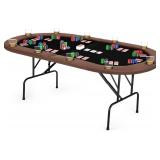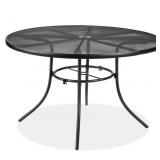 1 5/8" diameter steel tube legs with adjustable bottom shelf. 35" table height.