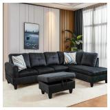 ****BOX 1/2 ONLY**** L Shaped Sectional Sofa with Ottoman, Modern Couches for Living Room, Microfiber Facing, Bedroom, Office
