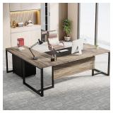 ****BOX 1/2 ONLY**** Tribesigns 70.8-Inch Executive Desk with File Cabinet, Large L Shaped Computer Desk with Storage Cabinet, L Shaped Desk with Drawer Cabinet, Retro Gray & Black