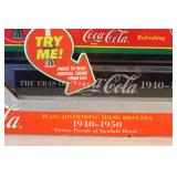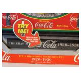 CATALOG TEXT BELOW: 1 - Rare Coca Cola Wood Syrup Barrel Lid 2 - 1966 Coca Cola Diamond Can Advetising Framed 3 - Vintage Coca Cola Delicious & Refreshing Clock 4 - Things Go Better with Coke Clock 5 - Coca Cola Side Car on Motorcycle Picture 6 - 1929 Lockheed Air Express Coca Cola Bank ERTL 7 - ERTL 1931 Coca Cola Airplane Spearman 8 - Sprite View Master 9 - Vintage COca Cola Aerobic Doll New Old Stock 10 - Coca Cola Aerobic Fashion Kits All New Old Stock 11 - Coca Cola Collectorors Club Truck 1995 12 - "Lets Celebrate America" Banner Coca Cola 13 - Blockbuster and Coca Cola Banner 14 - Coca Cola Pedal Palne 15 - Vintage Coca Cola MIniature Plastic Cooler q 16 - Assorted Coca Cola Cassette Tapes and More 17 - Vintage Turbo Racing Team Car 18 - Vintage Coca Cola Paper Popcorn Bag Framed 19 - Barbie Doll Coca Cola Clothes 20 - Coca Cola Collectors Club View Master 21 - 2 Coca Cola Bingo Game Cards 22 - Coca Cola Notebooks 23 - Coca Cola License Plate 24 - Coca Cola Name the States School Notebook 25 - Sign of Good Taste Retro Coca Cola Playing Cards 26 - Zing refreshing New Feeling Coke Playing Cards 27 - Refreshment through 70 Years Coke Cards 28 - Coca Cola Refresh Playig Cards 29 - 1951 Coca Cola playing Cards 30 - Diet Coca Cola Dry Erase Board 31 - Coca Cola Bottle Tapestry 32 - Collection of Coca Cola POGS 33 - Assortment of Coca Cola Bottle Openers 34 - Assorted Coca Cola Collector Cards 35 - Lot of Assorted Coca Cola Items 36 - Coca Cola Items 37 - Vintage Buddy L Coca Cola Delivery toy Truck 38 - Lot of Assorted Coca Cola Collectables 39 - Assorted Coca Cola Playing Cards 40 - Coca Cola Stationary and Cards 41 - Assorted Coca Cola Playing Cards 42 - Coca Cola Playing Cards 43 - K.C. 500 and 600 Racing Coca Cola Cards 44 - Assorted Baseball & Coca Cola Cards 45 - Assorted Porcelain Coca Cola Sewing Thimbles 46 - Coca Cola "Slow School Zone' Crossing Guard Figure 47 - Assorted Coca Cola Pocket Knives 48 - Bottle Caps and Coke Playing Cards 49 - Tall "Ice Cold Coca Cola" Sign 50 - Vintage Coca Cola Metal Sign 51 - "Enjoy Coke" Sign 52 - Assorted Coca Cola Signs and Ads 53 - Enjoy Coca Cola Banner Sign 54 - 2 Very Vintage Coca Cola Metal Signs 55 - Cast Iron Coca Cola Base 56 - Coca Cola Bottle Return Cart 57 - Coca Cola Store Display 58 - 2 Coca Cola Ridge Club Signs 59 - Large Outdoor Enjoy Coca Cola Sign 60 - Coca Cola Sign 61 - NEW Store Promo Coke Advertising Kit 62 - Super Bowl LXXVIII Coca Cola Poster 63 - Coca Cola Mighty Refreshing Sign 64 - Old Framed Coca COla Poster Advertising 65 - Coca Cola Print 66 - Coca Cola Signed Art 67 - "Nothing Taste Like Coca Cola" Ad 68 - Coca Cola Poster 69 - Coca Cola & Bacardi Signs 70 - Always Coca Cola Sign q 71 - Ahhhh Coca Cola Bottle Sign 72 - Coca Cola Bottle Racks VINTAGE 73 - Coca Cola Cooler 74 - Plays Advertising Themes from Coca Cola 75 - Coca Cola Musical Playing Advertising Themes 76 - Coca Cola Musical Playing Advertising Themes 77 - Coca Cola Musical Playing Advertising Themes 78 - Coca Cola Musical Playing Advertising Themes 79 - Vintage Coca Cola Textbook Covers 80 - Coca Cola Have a Coke Tray 81 - 1966 Volkswagon Beetle Die Cast Coca Cola Car 82 - Coca Cola Silverware Set 83 - Coca Cola Delicious & Regreshing Metal Tray 84 - Coca Cola Army and Sailor Hats 85 - Coca Cola Pinball Machine 86 - 1985 Nostalgic Musical Bank Coca Cola Classic 87 - Coca Cola Soda Dispenser Bank with box 88 - Retro Coca Cola Soda Machine Bank 89 - Coca Cola Musical Bank 90 - Fountain Machine Musical Coca Cola 91 - Coca Cola Collectiable Clock 92 - Coca Cola Salt/Pepper Shakers & Toothpick Dispens 93 - 1940 Ford Sedan Cargo Van Die Cast Car 94 - Coca Cola Metal Tray with Festoon 95 - 3 Coca Cola Puzzles 96 - 6 Coca Cola Die Cast Collectable Cars 97 - Coca Cola Kitchen Towels 98 - 2 Coca Cola Caraffes 99 - 3 Coca Cola Puzzles 100 - 5 Assorted Coca Cola Collectible Toy Cars 101 - 6 Collectible Coca Cola Flovors Die Cast Cars 102 - Coca Cola Bowling Alley Musical Bank 103 - Coca Cola Santa with Deer Celebration of Santa 104 - Coca Cola Airstream Dream 105 - Coca COla Vintage Vending Machine Bank 106 - Coca Cola Bottle Phone with box 107 - Coca Cola Die Cast Delivery Truck 108 - Coca Cola MIni clock 109 - 4 Assorted Vintage Coca Cola Lighters 110 - Coca Cola Art Clock 111 - Cooking with Coke Sealed 112 - Coca Cola Skiing Polar Bear 113 - Coca Cola Can Design FM Radio 114 - Coca COla Vening Machine Radio 115 - Early Coca Cola Sewing Needle Packet 116 - Coca Cola Die Cast Metal Radio 117 - Coca Cola Miniature Contour Bottle Set 118 - Metal Coca Cola Vending Machine Bank 119 - Coca Cola Lunchbox salt & pepper shaker 120 - Vintage 1970s Coca Cola Salt and Pepper Set 121 - Coca Cola USA Olympic Telephone Box 122 - Coca Cola Wallets 123 - "I'd Like to buy the world a Coke..." Truck 124 - Coca Cola Dairy Queen Advetising Tray 125 - Coca Cola "things go better with coke" Music Box 126 - Vintage Flower Arranging Books by Coke 127 - 3 Assorted Trim a tree Collections 128 - Coca Cola Puzzle 129 - Lot of Assorted WALT DISNEY Coca Cola Bottles 130 - Coca Cola Plastic Bottle Carrier & Asst bottles 131 - Plastic Coca Cola Cups and Bowl 132 - Coca Cola 4 Pack of Hutchinson Bottles 133 - 5 Coca Cola DIe Cast Toy Cars NIP 134 - 100th Aniversary OZARKS Coca Cola Bottling Tray 135 - Coca Cola Beanie Babies 136 - Coke Music Box, Ornaments, Plates and More 137 - 3 Six Packs of Coca Cola Classic 138 - Assorted Ball Bottles of Sprite and Coke 139 - Coca Cola Space Shuttle Metal Serving Tray 140 - Pop Up Book=Coca Cola Santa is Comin To Town 141 - 5 Assorted Coca Cola Collector Plates 142 - Coasters, Salt/Pepper Shakers, Napkin Holder 143 - Miniature Coca Cola Bottles & Six Packs 144 - Coke Ornaments 145 - Coca Cola Tins and Ornaments 146 - 4 Assorted Coca Cola Bells 147 - Coca Cola Mugs 148 - Coca Cola Juke Box Radio 149 - Coca Cola Serving Tray 150 - Coca Cola wind up toys 151 - Coca Cola Light Sets 152 - Assorted Coca Cola Items 153 - 100th Anniversary Bottle Set Hutchinson 