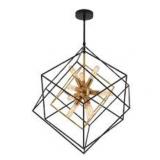 Artika Imperium 9-Light Black and Gold Modern Sputnik Geometric Cage Chandelier Light Fixture for Dining Room or Kitchen