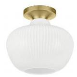 Pompton 12 in. 1-Light Gold Semi-Flush Mount Ceiling Light Fixture with White Ribbed Glass