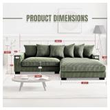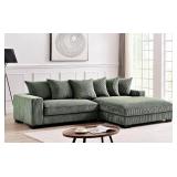 (153) Luxe Oversized Two-Piece Right Facing Sectional Couches for Living Room, 102.4-Inch L Shaped Sofa with Chaise, Upholstered with Corduroy Fabric, Dark Green- 2 boxes