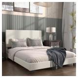 (47) Meridian Furniture NashCream-K Nash Collection Modern | Contemporary Boucle Fabric Upholstered King Bed with Rich Cream Boucle Fabric and Deep Channel Tufting, 89" W x 91" D x 38" H, Cream, King -2 boxes