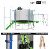 *INCOMPLETE*12ft Trampoline Combination with Swing and Slide, Safety Net and Basketball Hoop, Outdoor for Kids and Adults Green