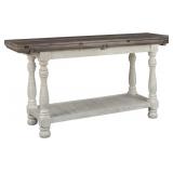 Signature Design by Ashley Havalance Farmhouse Sofa Table, Flip Top Design for Additional Dining Space and Fixed Lower Shelf, Gray & White with Weathered Finish