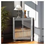 - 【Stunning Mirrored Cabinet】The mirror surface of the corner table and the elegant crystal door handle is very reflective that brightens up the space. The dazzling diamond gems embedded on the door catch the light and create a mesmerizing display of elegance and opulence. The combination of the mirrored finish and the diamond accents makes this storage cabinet a true statement piece, adding a touch of luxury and sophistication to any room.