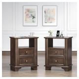 VINGLI 19.7" Nightstands Set of 2, Night Stands with Charging Station, Nightstand with Drawers, Wood Nightstand Bedroom, Bed Side Table, End Table, Night Stand with Charger Station, Brown