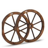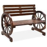 2-Person Wooden Wagon Wheel Bench for Backyard, Patio, Porch, Garden, Outdoor Lounge Furniture w/Rustic Country Design, Slatted Seat and Backrest - Brown