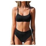 CUPSHE Women's Bikini Set Two Piece Swimsuit High Waisted Scoop Neck Swimwear SIZE MEDIUM