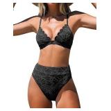 CUPSHE Bikini Set for Women Bathing Suit High Waisted Scalloped V Neck Two Pieces Swimsuit SIZE MEDIUM