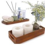 Set 2 Wooden Toilet Tray & Vanity Tray from Acacia Wood for Bathroom Counter Organizer and Back of Toilet Tank Topper Paper Hand Towel Tray Decorative Organizer for Bathroom Accessories