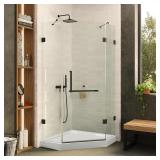 (134) Shower Set for 30" x 30" Space - Neo Angle, Acrylic Shower Base with Compatible Glass Frameless Shower Enclosure - Black, 30" x 30"