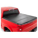 (14) Rough Country Hard Tri-Fold Flip Up Truck Bed Tonneau Cover for Chevy Silverado & GMC Sierra 1500 (2019-2025) - Flush Aluminum Bed Cover, Fits 6'7 (78.9-79.4") Bed