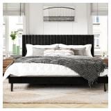 VECELO Queen Size Bed Frame Premium Velvet Upholstered Platform with Height Adjustable Headboard/Mattress Foundation, Solid Wooden Slat Support, No Box Spring Needed/Easy Assembly