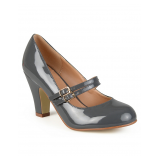Show off classic style in Mary Jane pumps by Journee Collection. These classic pumps feature imitation leather uppers and highlight a double strap design with dainty buckle accents across the tops of the foot. Classic round toes and chunky high-heels complete the design. Slightly padded insoles and textured outsole add traction while medium height chunky heels provide stability and an attractive appearance. Style: Mary Janes, Material: imitation leather, Toe shape: Round, Heel height/type: 3.3-inch chunky, Platform height: 0.4-inch, Width: Medium, Lining: No lining, Sole: TPR, Footbed: Slightly padded, Upper/outersole material: imitation leather/TPR. All measurements are approximate and were taken using a size 6. Please note measurements may vary slightly by size.