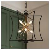 Black Sputnik Chandelier] Greet guests with a warm and welcoming glow in the entryway with this stunning 6-light black chandelier. Sure to make a statement in any space, this chandelier features a black geometric frame that takes a sputnik-inspired silhouette with bursting rays all in gold finish for a glint of glamour.